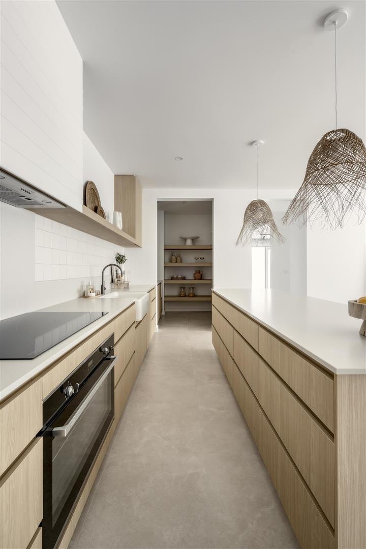 A generous walk-in pantry provides ample storage, making meal preparation seamless and efficient. This thoughtful design ensures the kitchen is not just a place for cooking but also the central hub for everything from birthday celebrations to homework sessions.